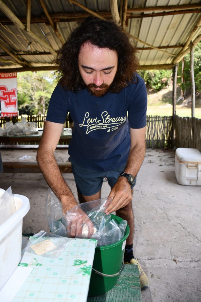On Wednesday, all of the men moved into the lab (in this case a repurposed kitchen) to number sherds. The sherd numbering was completed by noon on Friday, resulting in five men (Ascel, Raynaldo, Jorge, Nelson, and Sotero) being taken out to Soccotz on Friday afternoon after a long season. Three men (Julio, Saul, Joel) remain for the final week to help with moving and packing as well as odds and ends. With the numbering completed, cataloguing moved into high gear for the staff with the lithics being completed on Sunday afternoon (leaving only the reconstructable ceramics to be done along with photography).