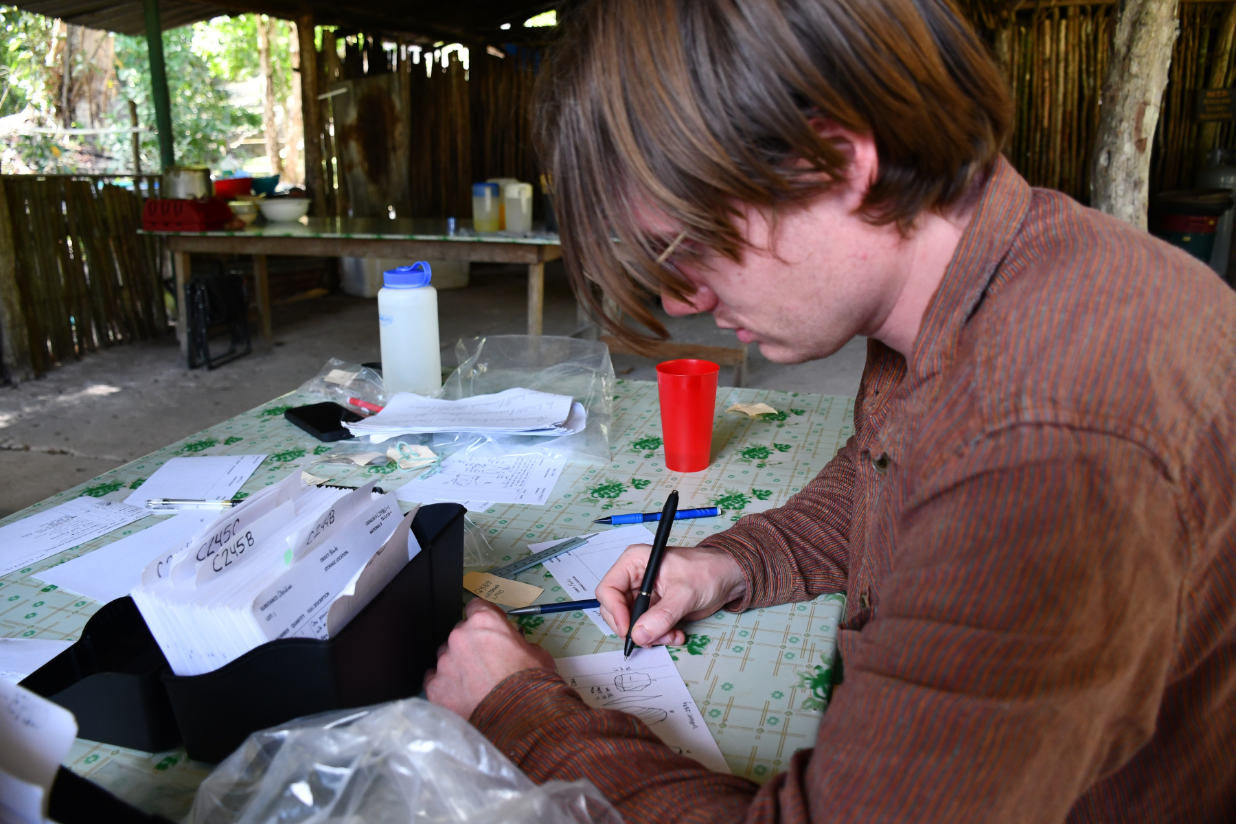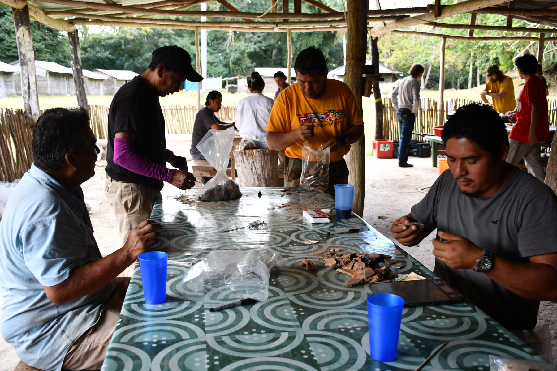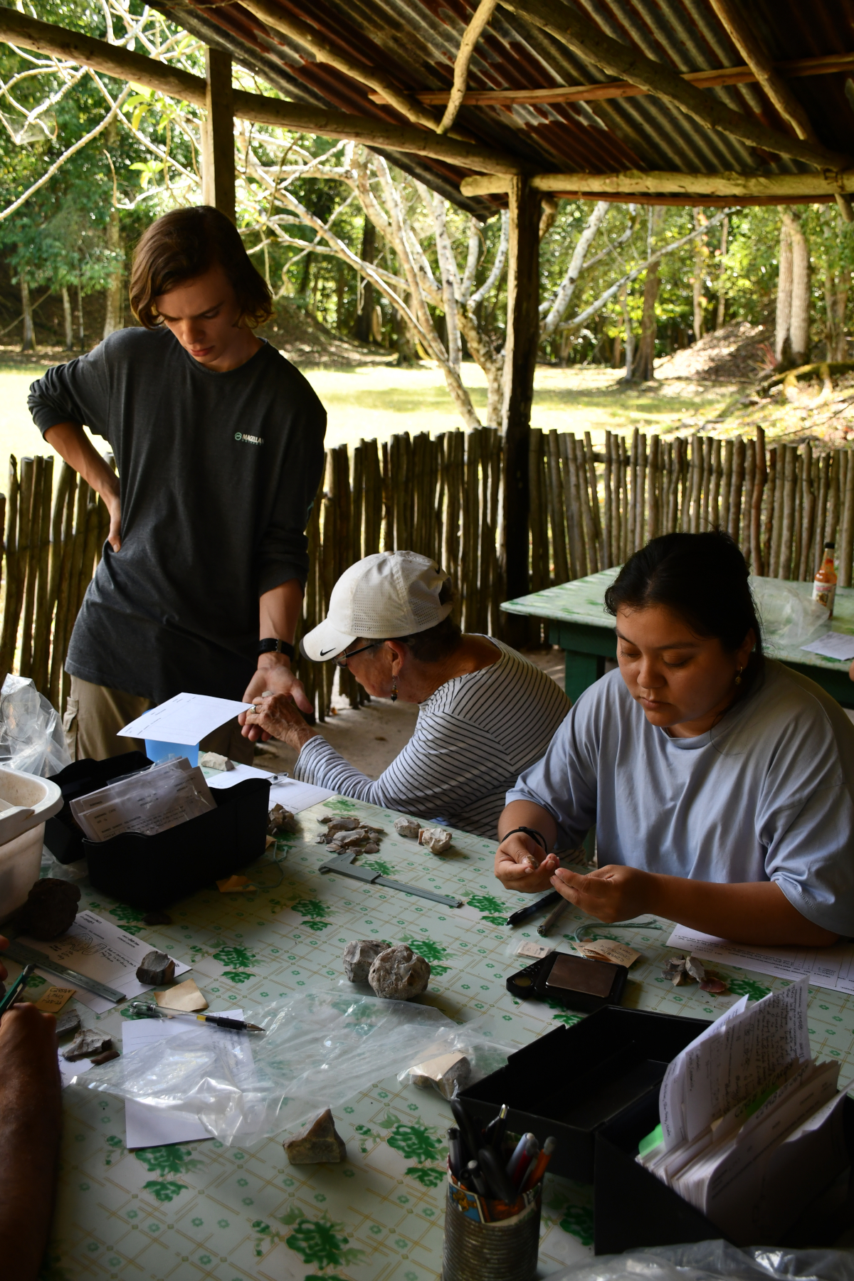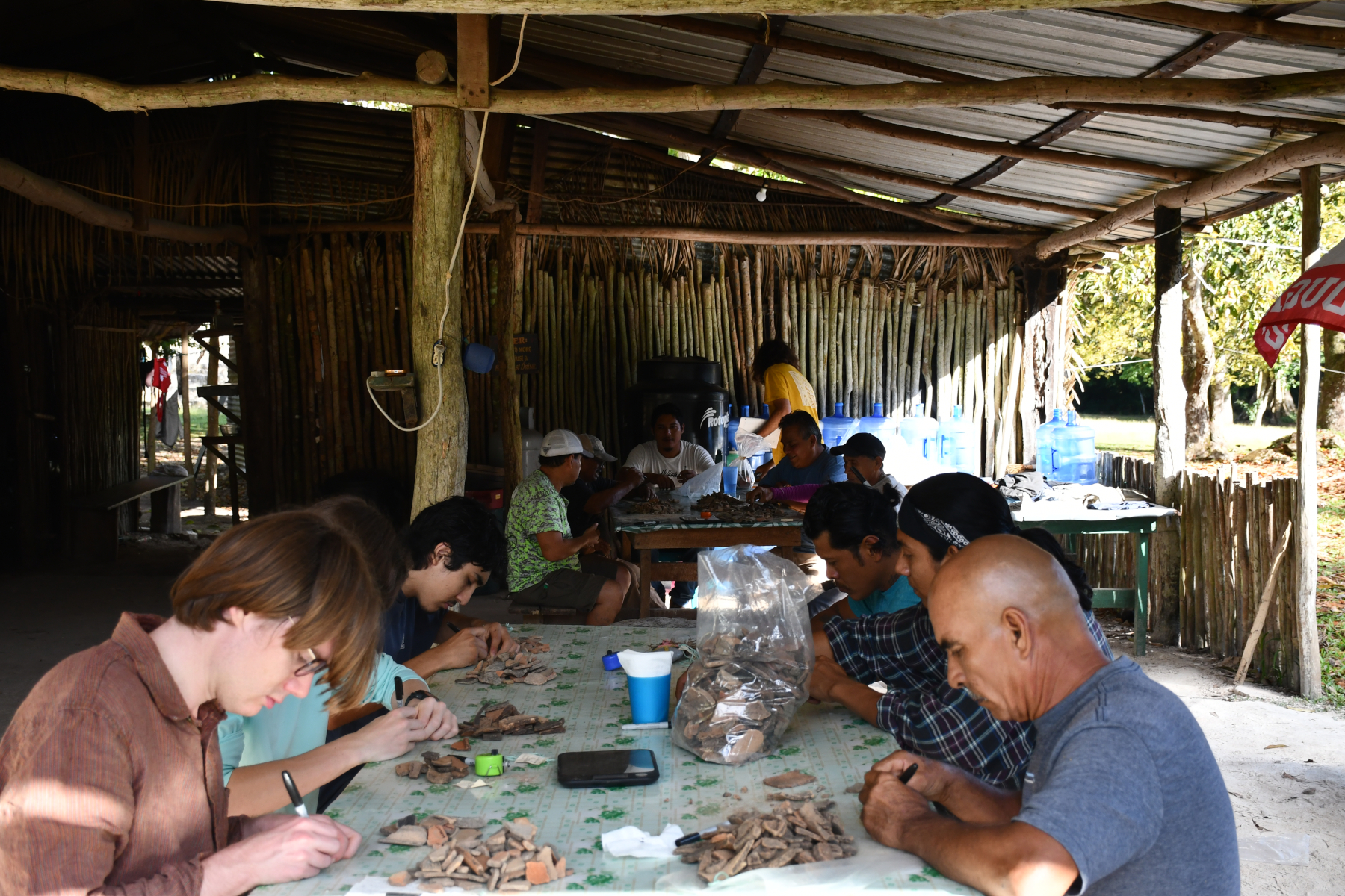 On Wednesday, all of the men moved into the lab (in this case a repurposed kitchen) to number sherds. The sherd numbering was completed by noon on Friday, resulting in five men (Ascel, Raynaldo, Jorge, Nelson, and Sotero) being taken out to Soccotz on Friday afternoon after a long season. Three men (Julio, Saul, Joel) remain for the final week to help with moving and packing as well as odds and ends. With the numbering completed, cataloguing moved into high gear for the staff with the lithics being completed on Sunday afternoon (leaving only the reconstructable ceramics to be done along with photography).