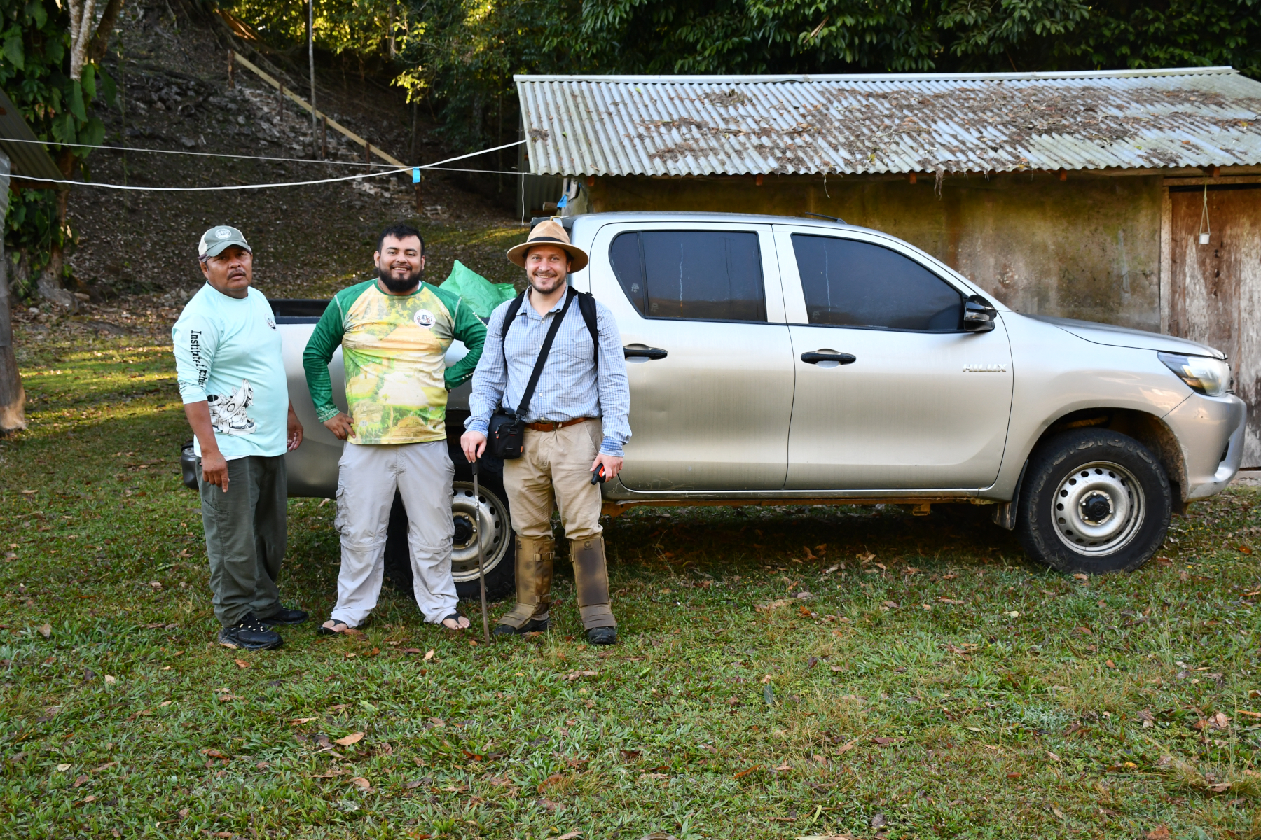 Also on Wednesday, Adrian left with Josue and Andres from the Institute of Archaeology to survey some of the sites found south of Caracol during last year’s lidar campaign. The three of them overnighted at Natural Arch and were able to look over two sites, one on the way to the Arch and one near Natural Arch. They succeeded in finding a host of structures and plazas as well as potential stone monuments. One of the monuments was a face-down stela that once had a height of over 4.5 m. The site around Natural Arch is fairly sizeable with a causeway going down to the river.